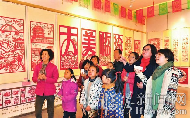 3月4日,在临汾市规划展览馆,市民在观看民俗剪纸展。元宵节期间,由市规划局、市妇联、市规划展览馆共同举办了“猜灯谜、赏民俗、看展览”元宵节主题活动,旨在以文化为内涵,提升城市品位,让市民在浓浓的节日氛围中感受临汾新变化。 记者 闫锐鹏 摄