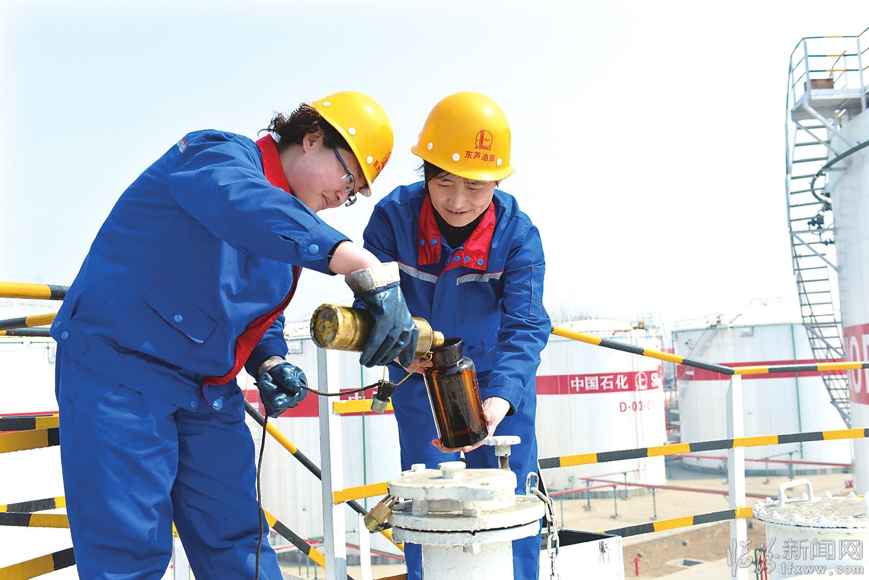 3月12日,在国际消费者权益日即将来临之际,中石化临汾分公司东芦油库质检员郭万香、刘红艳正在对出库前的油品进行采样化验。