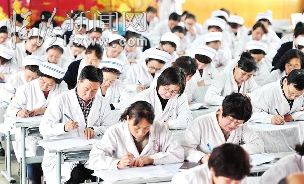 3月19日,市第四人民医院医护人员在进行党风廉政建设和医德医风知识考试。近日,市卫生局传达市纪委三届五次全会精神,并对市直医院4000余名医务人员进行了党风廉政建设和医德医风相关知识考试,提醒医务人员时刻警醒自身,执行廉洁从业有关规定。 记者李虎威摄