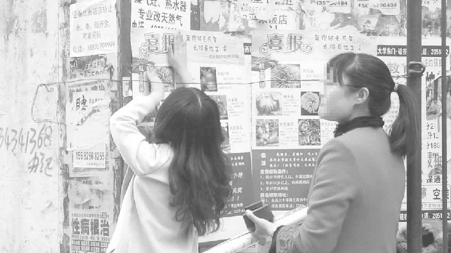 临汾新闻网记者梁丽 丁莹摄影报道 3月21日,记者经过财神楼,看到几个人正在早市进出口处私贴小广告,墙面被贴成了“大花脸”。