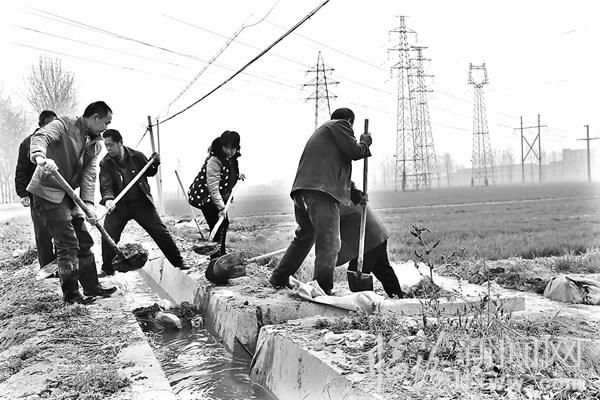 3月24日,侯马市张村办观庄村的村民们正在浇灌麦田。随着气温回升,农民们抓紧农时做好小麦春管、追肥和春浇,促进小麦苗情转化,以保障今年有个好收成。 崔选荣摄