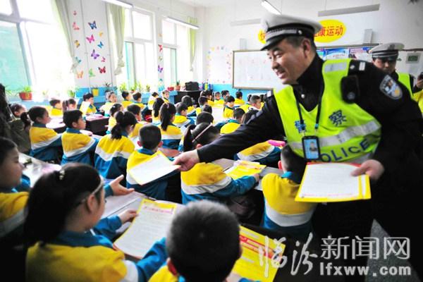 3月30日,是第二十个全国中小学安全教育日,当日,临汾交警支队南城大队一中队的交警们来到临汾第一小学,开展了以“我安全 我健康 我快乐”为主题的安全教育活动,通过讲解交通法规和发放宣传单等活动,使更多的孩子们加入到宣传队伍中来、模范遵守交通法规、杜绝和降低各类伤亡事故的发生,做好自我安全保护,健康的成长。李自强 孙国芳 摄