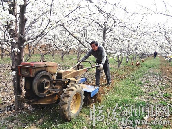 4月20日,翼城县北关村村民谷家祥在自家果园里除草、疏松土壤。谷家祥承包了50亩果园,每年仅红香酥梨就可产5万公斤,收入10余万元。 姚冬娟 付永明 摄