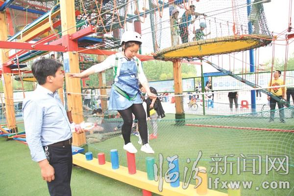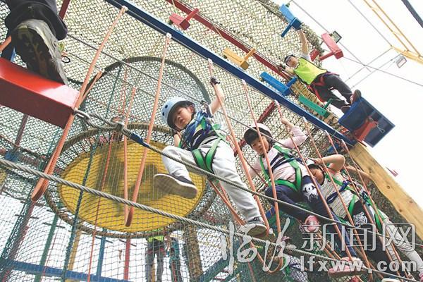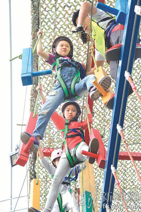 随着天气逐渐变暖,许多家长纷纷在周末带着孩子们出去游玩。4月25日下午,记者在九州公园内看到,成群结队的孩子们在玩攀岩、过关等游戏,家长们也参与其中进行亲子活动。一位家长高兴地说,这些活动可以很好地锻炼孩子的胆量、平衡、灵活、力量与速度等能力,在和孩子们一起玩耍的同时也增加了感情。 赵文家 摄