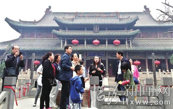 市民在尧庙景区参观。