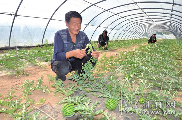 近日,翼城县里砦镇张桥村村民吉红温的大棚西瓜长势十分喜人。今年吉红温种植了3亩大棚西瓜,预计首批成熟西瓜将于7月份上市,每个大棚纯收入8000余元。