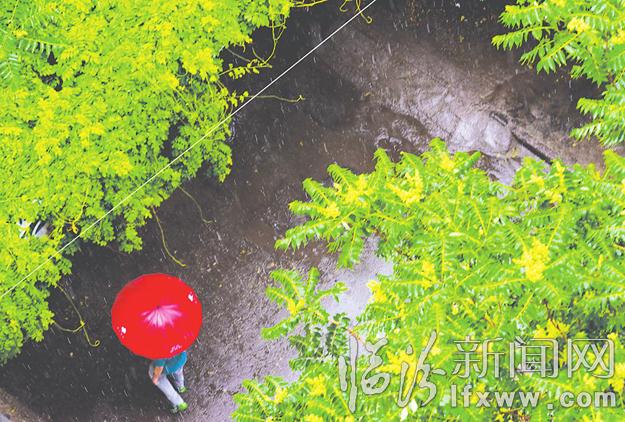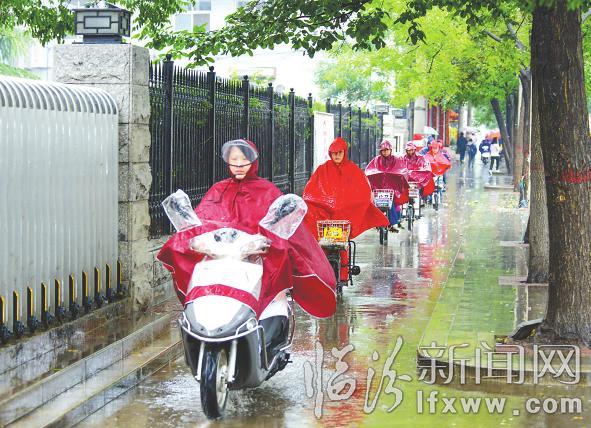 临汾新闻网讯 5月21日,干涸已久的临汾终于迎来了一场久违的小雨,淅淅沥沥的小雨从天空欢快地洒向地面,散落在行人身上,瞬间化作一朵朵小水花,在去除暑热的同时连带着湿润的空气,散发着沁人的清香。街道两旁的行道树经过雨水的冲刷,成为一抹通灵欲滴的翠绿,各色雨衣、雨伞如彩色的精灵在街头一隅绽放。