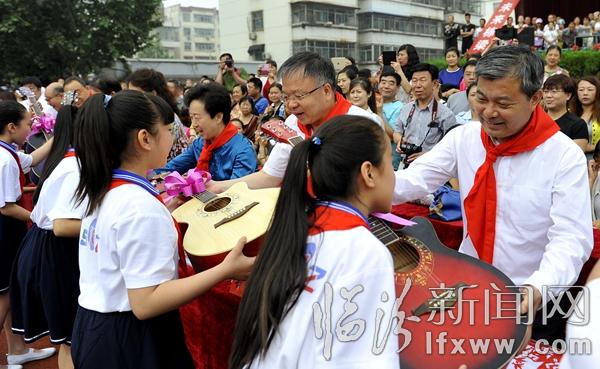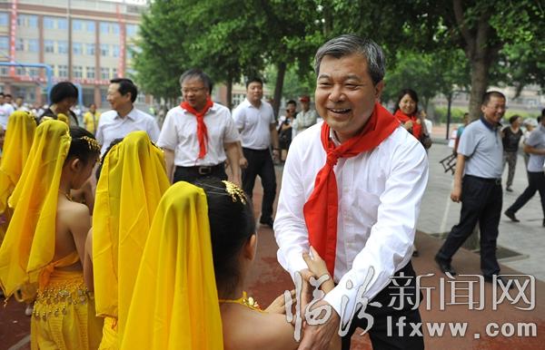 在市第一小学,罗清宇、岳普煜等市领导接受了少先队员敬献的红领巾,观看了小学生们表演的精彩节目,并走到孩子们中间,与他们一起载歌载舞,共同迎接美好节日的到来。罗清宇在讲话中向孩子们表示了节日的祝福,并提出了殷切期望,希望他们珍惜今天的幸福生活,珍惜今天的学习机会,立德明礼、志存高远,从自身做起,从生活点滴入手,培养良好的行为习惯和道德品质,让社会主义核心价值观融化在心灵里,立志为祖国争光、为家乡添彩,做一个胸怀远大、信念坚定,知识渊博、勇于创新,身心健康、全面发展的好少年。也希望广大老师和教职员工忠诚党的教育事业,继续发扬敬业奉献、甘为人梯的精神,精心教书、潜心育人,不仅传播知识、健康身心,而且传授美德、陶冶性情,把我们的下一代培养好、教育好,为孩子的成长、成才打好基础。