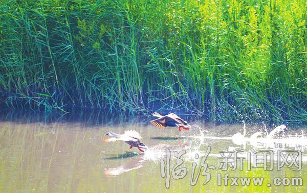 图为6月6日,汾河河畔野生水鸟在栖息、嬉戏。记者 张蕴强 摄