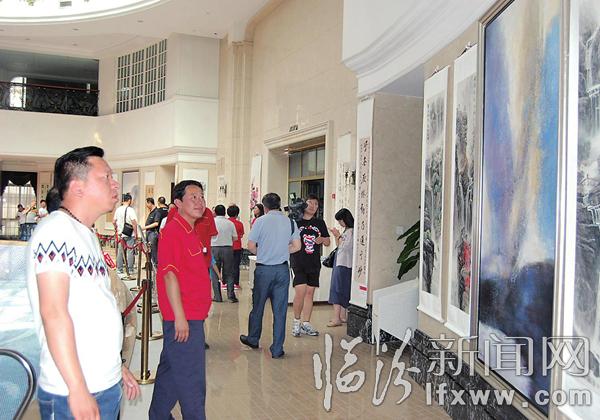 临汾新闻网讯 日前,华基墨韵·临汾书画名家6人作品展在位于平阳桥东的金域王府大厦拉开帷幕,展出了侯天元、范珍明、张忠民、贾岩鸿、杨洋、杨建玲6位书画名家的书画作品。这天也是临汾华基混凝土有限公司成立五周年纪念日,举办书画联展不仅提高了企业文化,还给市民奉上了一道丰富的书画盛宴。 来祥生 李向虎 摄