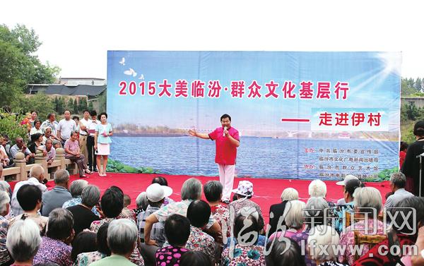 临汾新闻网讯 6月14日,市群众艺术馆的演员在尧都区尧庙镇伊村表演节目。当日,2015大美临汾·群众文化基层行活动在这里举行,独唱、舞蹈、小品、蒲剧等精彩节目赢得了当地群众的热烈掌声。此次活动旨在弘扬民间艺术和传统民族文化,推动全市文化事业的良性发展,丰富基层群众的文化生活。 记者 孙国芳 摄