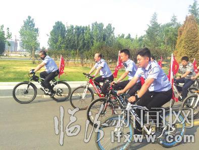 临汾新闻网讯 6月16日上午,在临汾西站至襄汾县南辛店乡的大西高铁沿线,临汾西站派出所的30余名工作人员穿着统一服装,组建了一支“专业”骑行队伍。