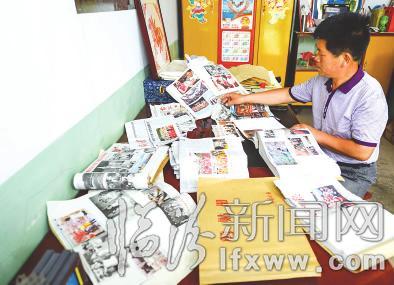 2007年3月,闫洪青开始了漫长的剪报生涯。“用掉了十多瓶胶水,光剪刀就用坏了三把。”为了剪报,老闫将与其他村民打牌、遛弯的时间都挤出来,就连自己最爱的象棋也被束之高阁。