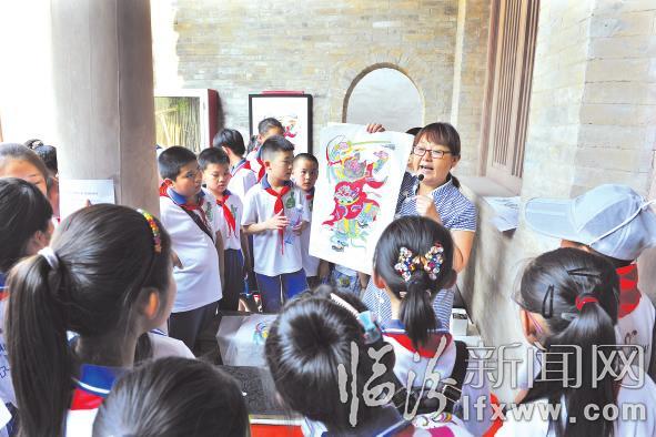 工作人员为学生们讲解“端午挂钟馗像”的由来。