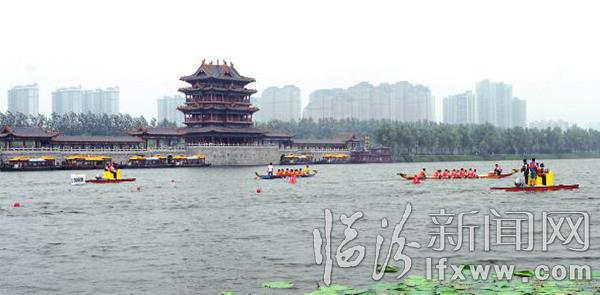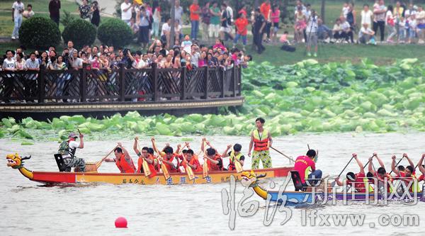 临汾新闻网讯 6月20日,在市区汾河生态公园,参赛龙舟队你追我赶,奋勇争先。当天,光大银行杯”临汾第二届龙舟赛开赛,来自全市各界的8支龙舟队、90余名运动员进行了激烈角逐。记者 李虎威 李自强 实习生 郑远飞 摄