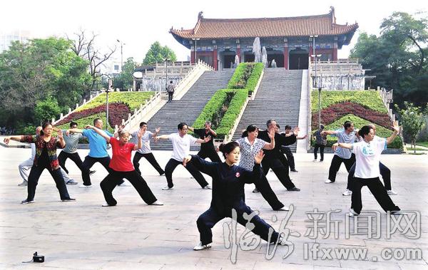临汾新闻网讯 日前,临汾杨式太极拳协会鼓楼站组织成员在山西师大毓秀湖旁训练太极拳,积极备战市运会,准备在全市人民面前一显身手。记者 孙国芳 摄