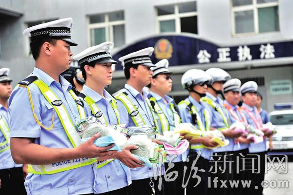 临汾新闻网讯 7月11日,市总工会组织开展“盛夏清凉送交警”活动,为炎炎夏日里执勤的一线民警送去了“夏日消暑礼包”,感谢他们为城市交通畅通做出的辛勤努力。 记者 闫锐鹏 摄