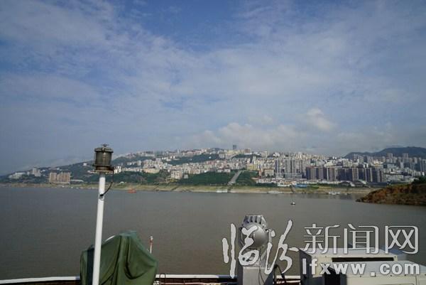 3、江面和两岸的景色随着巨轮的前行,貌似在向后移动。