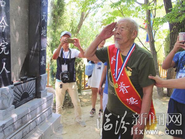 在烈士纪念碑前,老人不由自主地念起了逝者的名字:旅长孙福麟、团长刘效增……”并庄重地给战友们致军礼。