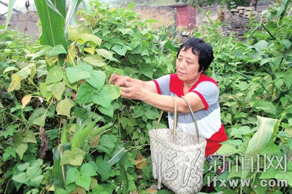 临汾新闻网讯 8月3日,霍州市辛置镇北村村民正在采摘豆角。近年来,辛置镇结合当地实际,大力推进“一村一品”特色产业,发展蔬菜、核桃干果经济林,昔日不起眼的荒山荒坡变成了农民增收的聚宝盆。 记者 范韶华 摄