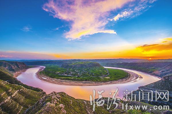 临汾新闻网讯 黄河乾坤湾位于中国最美的十大峡谷之一的晋陕大峡谷之间,是一个地地道道的自然文化遗产景观。乾坤湾是黄河流域上一道奇特的风景,即使没去过的人,仅凭望文生义,亦可知其形巧夺天工,其意蕴含深厚。图为本报记者于日前拍摄的落日下的乾坤湾。 记者 王隰斌 张蕴强 摄