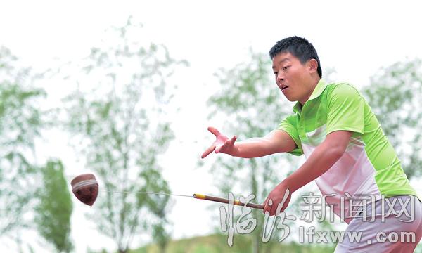 临汾新闻网讯 8月12日,在第十届全国少数民族传统体育运动会上,我市运动员闪雷、马振江、王海俊荣获陀螺男子团体三等奖。图为马振江在进行陀螺比赛。记者 李虎威摄
