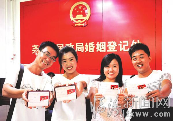 临汾新闻网讯 8月20日上午,两对新人在尧都区民政局婚姻登记处领到了期盼已久的结婚证。他们告诉记者,在七月初七这一天领证非常有意义。