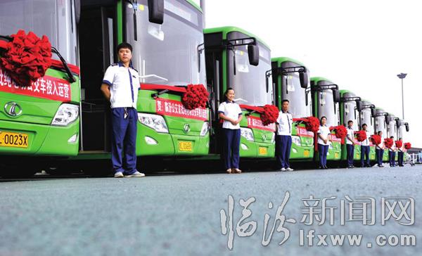 临汾新闻网讯 8月25日,在临汾西站公交停车场,全新型纯电动公交车整装待发。当日,我市首批32辆纯电动公交车正式投入运营。这种新型纯电动公交车噪音小、零排放、充电快、续航时间长,在大大降低公交行业经营运行成本的同时,既提高了市民乘坐公交的舒适度,又对城市治污减霾有着积极作用。