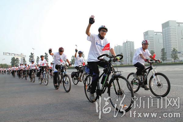 29月1日,我市捷安特自行车俱乐部举办“铭记历史、珍爱和平——纪念抗战胜利70周年”环城骑行活动。记者 郑远飞摄