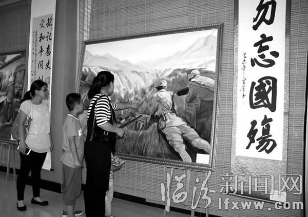 在蒲县举办的“纪念抗日战争胜利70周年暨第四届‘段云书画奖’书画展”上,众多观众前来观看画展。张鹏摄