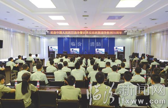临汾消防支队组织官兵集中收看阅兵仪式。
