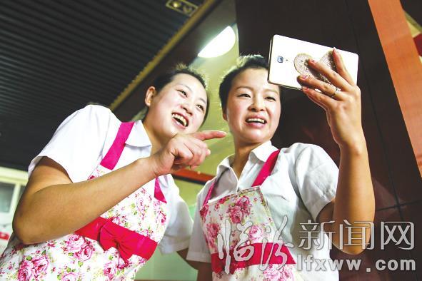 小姚面馆水厂店的厨师们忙里偷闲看阅兵。
