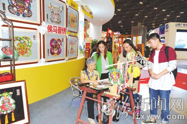 临汾新闻网讯 9月9日,第二届山西文化产业博览交易会在中国(太原)煤炭交易中心隆重举行。我市30余项参展项目向全国乃至全世界展示了临汾的深厚文化底蕴和独特魅力。图为临汾展厅内的侯马刺绣吸引了游客驻足观看。