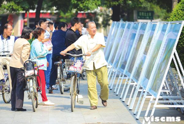 临汾新闻网讯 9月15日,市民在鼓楼广场观看由市规划局设立的“临汾市城市建设改造重点项目”系列宣传展板。