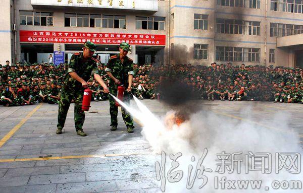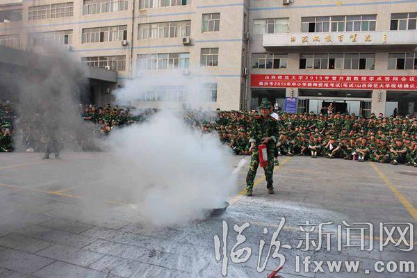 临汾新闻网网讯 9月20日,为了加强高等学校安全教育与各种应急演练工作,进一步加强学校安全工作,增强学校师生消防安全意识,本着“以人为本”的思想,提高自救防范能力,临汾市消防支队与山西师范大学联合举新生消防应急知识和应急疏散演练活动,活动中武警官兵们指导学生在发生火警火灾时,临危不乱,有序、迅速地按照消防逃生路线安全疏散。通过此次活动,提高了大学生安全防范意识和自救能力。 孙国芳 摄