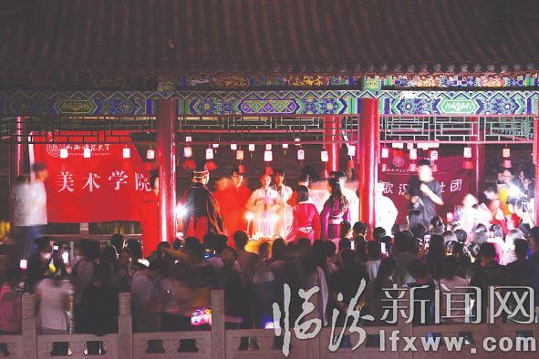临汾新闻网讯 “拜月祈福,祝以文曰:水浴清蟾,凝光悠悠……”9月28日傍晚,山西师范大学汉服社的学生们齐聚该校湖心亭,身着传统汉服,遵照中秋古礼,齐声拜月。该活动的举行为校园增添了中华民族传统文化的浓郁气息。