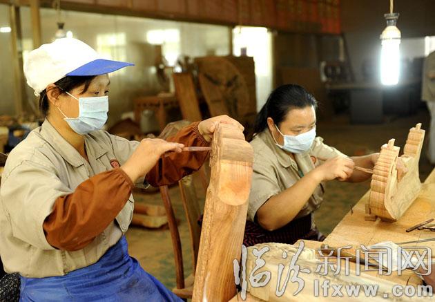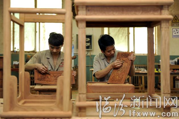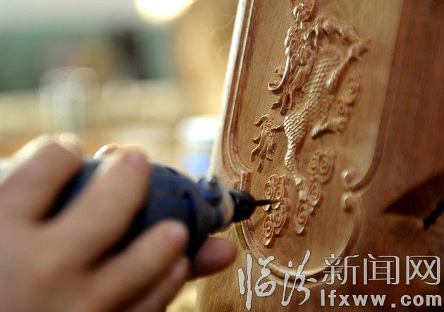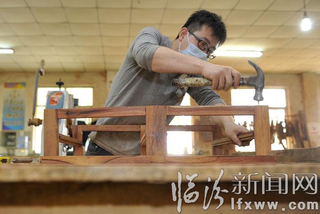 10月12日,在我市桂莆木业有限公司,技术人员在对产品用料组件进行砂光表面处理。桂莆木业在红木加工制作过程中,在遵循传统工艺的基础上,不断改革创新,结合北方气候的实际情况,成立创意设计机构,有效解决了红木开裂、变形的问题,同时调整营销思路,让红木家具走进普通市场,产品远销河南、陕西、北京等地。