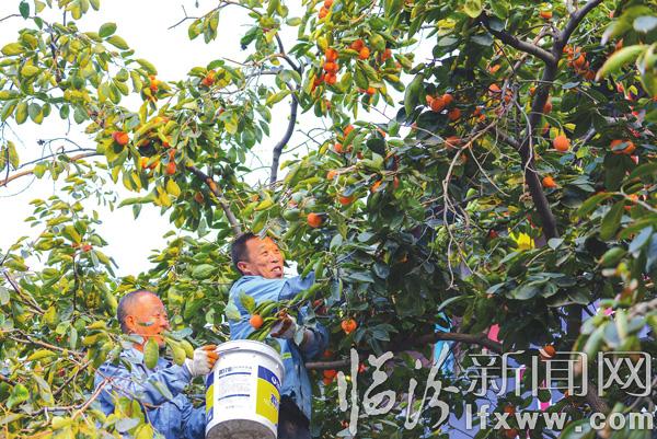临汾新闻网讯 金秋十月,我市数条街上的柿子红了,“花果城”的美誉实至名归。10月14日,临汾市城市绿化队工作人员对我市鼓楼东大街、洪家楼北街、平阳北街等街道的柿子树进行了采摘。 记者 张蕴强 摄