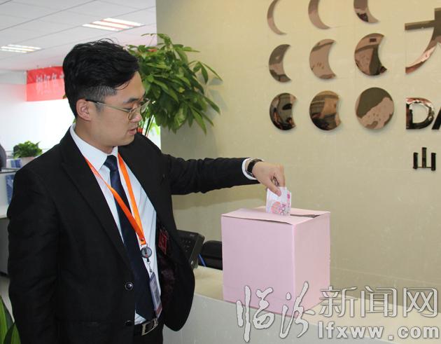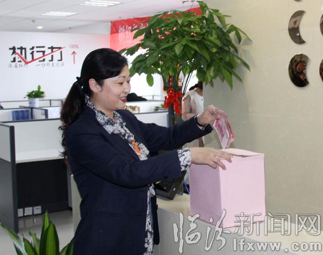 这是一次爱的传递给孩子一个帮助,用自己一点点的爱心点燃生命之火,10月20日,在河汾路大大集团临汾市公司举行“让爱传递 用爱点燃希望”爱心捐助活动.