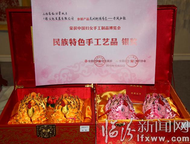 临汾新闻网浙江义乌讯(记者 闫锐鹏) 10月23日上午,中国妇女手工制品博览会颁奖仪式在义乌国际博览中心举行,全国发展部部长崔卫燕等领导出席仪式,山西省妇联副主席韩丽珍出席颁奖仪式。临汾市翼城县的民间刺绣布艺《丹凤和鞋》荣获中国妇女手工制品博览会民族特色手工艺品银奖。