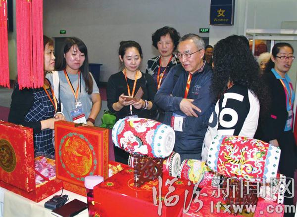 临汾新闻网讯 10月24日,在浙江义乌举办的中国妇女手工制品博览会上,翼城民间刺绣《丹凤和鞋》布艺荣获民族特色手工艺品银奖。该博览会开展以来,临汾平阳花文化创意产业孵化基地展位人气爆棚,中外客商络绎不绝,一件件精美的妇女手工制品赢得了参展人员的一致好评。