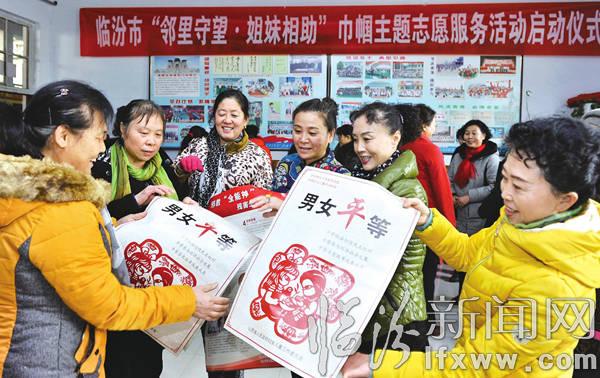 临汾新闻网讯 近日,我市的社区巾帼志愿者举行了“邻里守望·姐妹相助”主题志愿活动。本次活动以空巢老人、贫困家庭、贫困妇女儿童、残疾人为重点服务对象,为他们提供生活照料、心理抚慰等志愿服务,在全市营造携手互助、传递大爱的社会文明环境。图为志愿者们正在领取宣传资料。记者 闫锐鹏摄