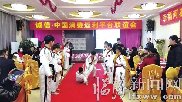 临汾新闻网讯 12月26日下午,市诚信联盟举办年度联谊会,近百商家欢聚一堂,共庆佳节、共话发展。诚信——中国消费返利平台联盟商家展示了其消费模式及经验分享。联谊会上还进行了精彩的节目表演及激动人心的抽奖活动。图为旭博跆拳道会馆的孩子们为大家表演跆拳道。