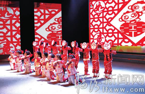 临汾新闻网讯 12月29日,市红黄蓝国际双语幼儿园举办了庆元旦新年演出。多个自编自导的节目让儿童、家长、教师一同参与到表演当中,促进了家园共育。图为大班小朋友表演《剪纸姑娘》。记者 闫锐鹏 郑远飞摄
