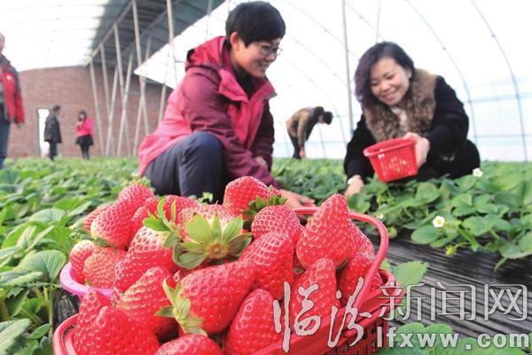 临汾新闻网讯 近日,市民正在襄汾县龙润庄园进行自由采摘草莓活动,品尝草莓,感受田园风光,体验田园乐趣。隆冬时节,屋外寒风凛冽,棚内草莓飘香,温暖如春的大棚内,通红的草莓挂在绿叶丛中,红红嫩嫩,十分诱人,前来采摘草莓的人更是络绎不绝。近年来,襄汾县大力推进农业产业结构调整,发展现代农业、乡村旅游,当地农民鼓起了腰包。