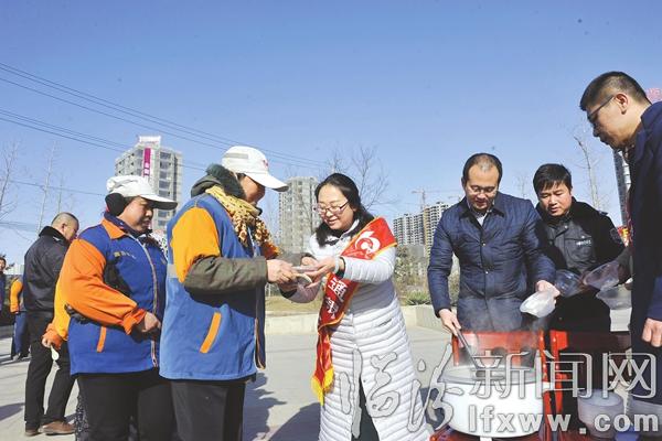 临汾新闻网讯 “过了腊八就是年”,1月17日是我国传统的腊八节,喝碗腊八粥,猴年好彩头。当日,交通银行临汾分行营业部的爱心志愿者们来到了环卫局东城环卫所,为环卫工人们送去一碗碗腊八粥,感谢他们为美化城市环境付出的辛勤汗水,让他们一同感受越来越近的年味。