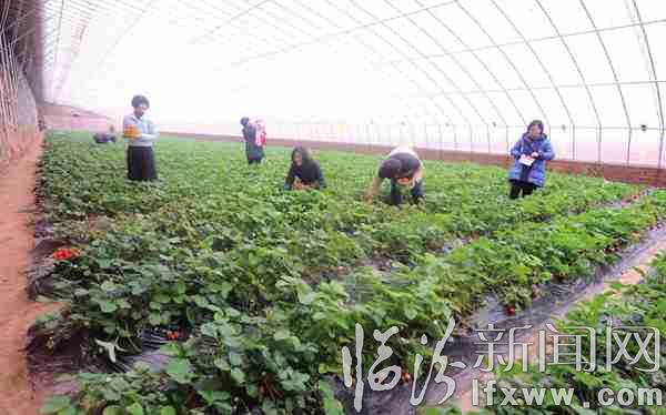 临汾新闻网讯 春节期间,翼城县南梁镇梁壁坡头四季红园艺中心培育的奶油草莓熟了,吸引了众多市民前去采摘,为节日期间的人们增添了许多乐趣。记者 李自强 摄