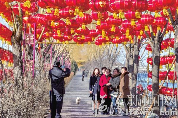 临汾新闻网讯 春节期间,我市各大景区挂满了灯笼,红彤彤的灯笼增添了节日气氛,人们穿梭在灯笼群中赏景、留影,其乐融融。 记者 郑远飞 摄