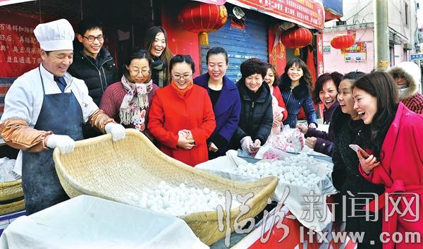 临汾新闻网讯 2月17日,在市区体育街肖老三元宵销售点,肖家元宵制作传承人肖志忠(左一)在为市民示范滚元宵技巧。当日,临汾名吃“肖老三元宵”开展了“走近肖家元宵,了解元宵制作技艺”互动活动,通过元宵历史普及、市民参与滚元宵以及品元宵等环节,更好地让市民了解这一传统特色小吃和其特有的文化魅力,喜迎元宵佳节的到来。