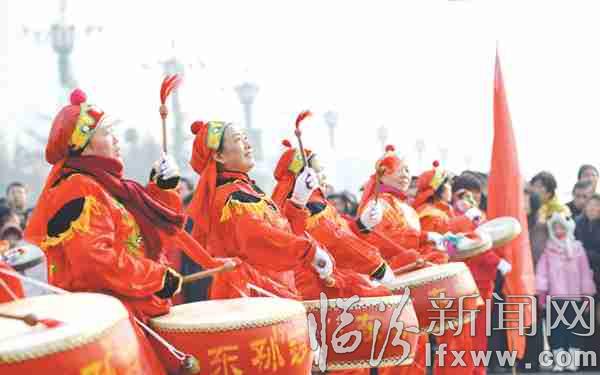临汾新闻网讯 2月22日,尧都区段店乡“元宵节文艺社火”在华洲路举办。来自段店乡各村的代表队打起鼓、敲起锣、载歌载舞,为市民们奉献了一场精彩的表演。